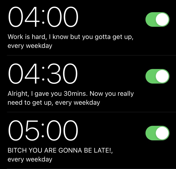 I set my sleep function so this is what I would read whenever I try to turn off the alarm. Believe me, it was tough